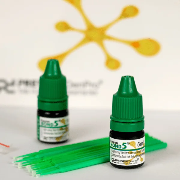 Fusion Bond 5 is a light-curing, total-etch, one-component bonding adhesive. It ensures strong adhesion between tooth tissue and composite resin, designed for both enamel and dentin bonding.