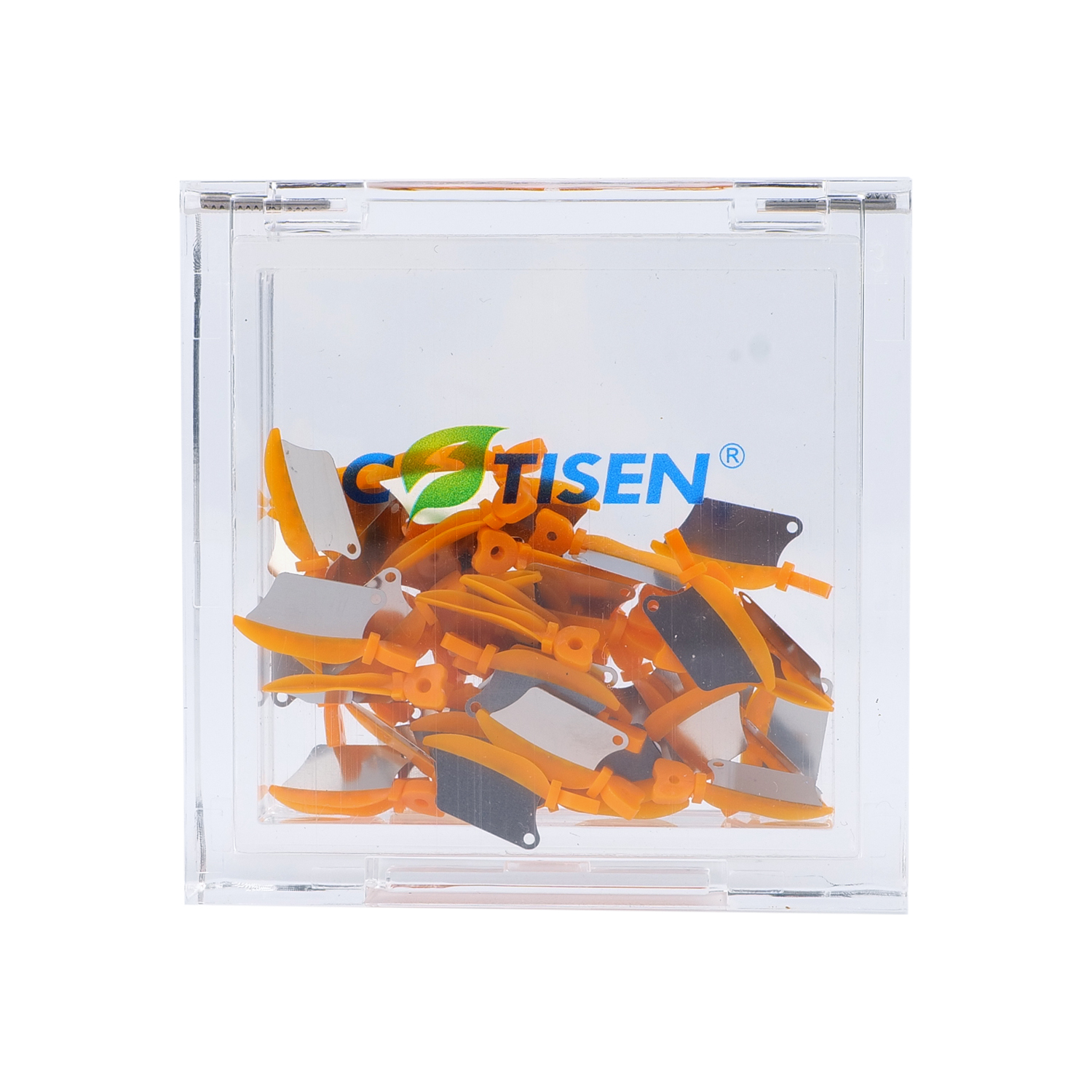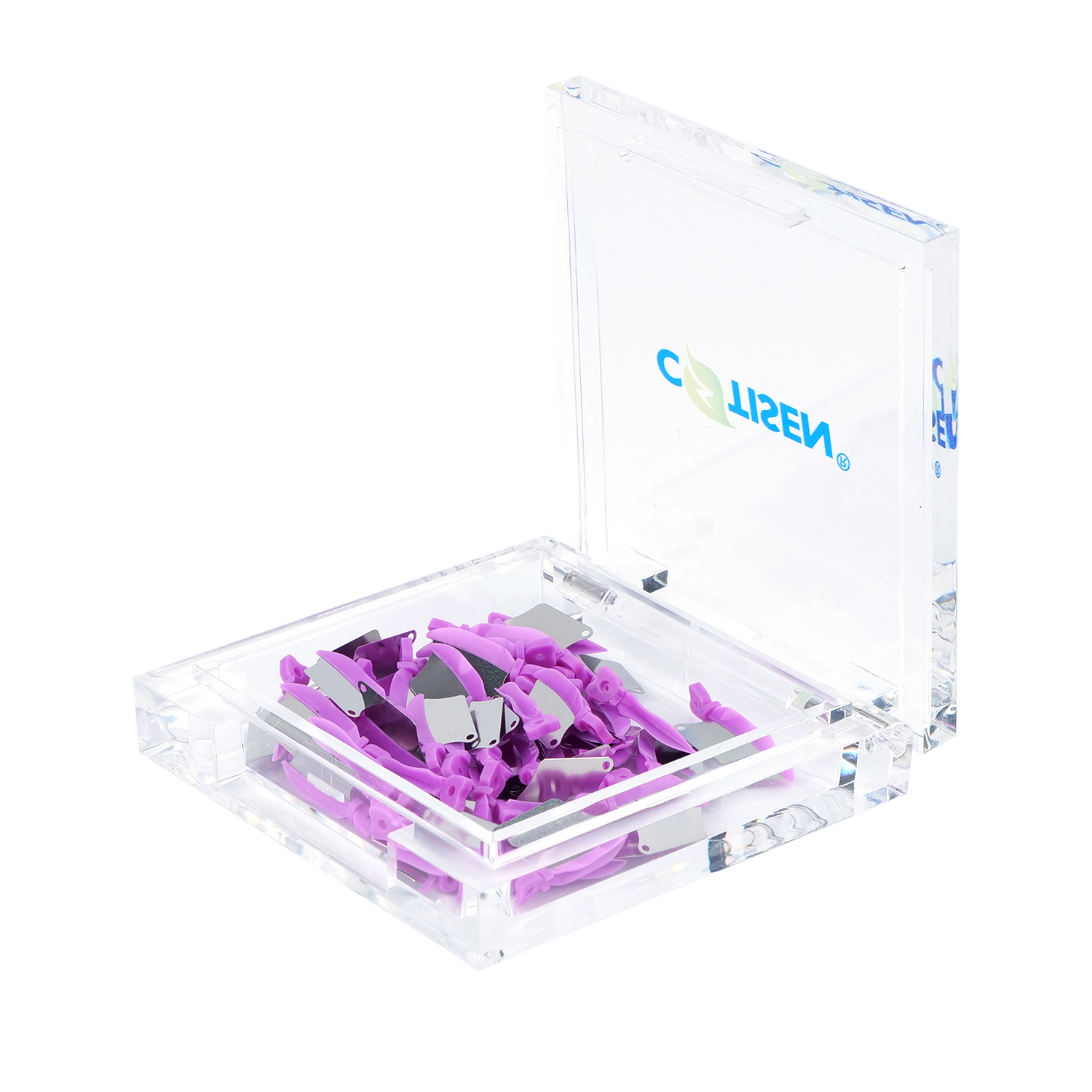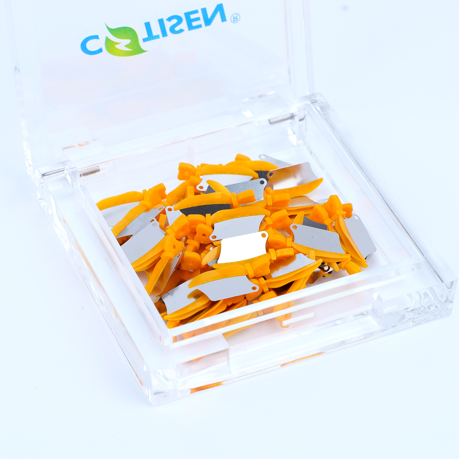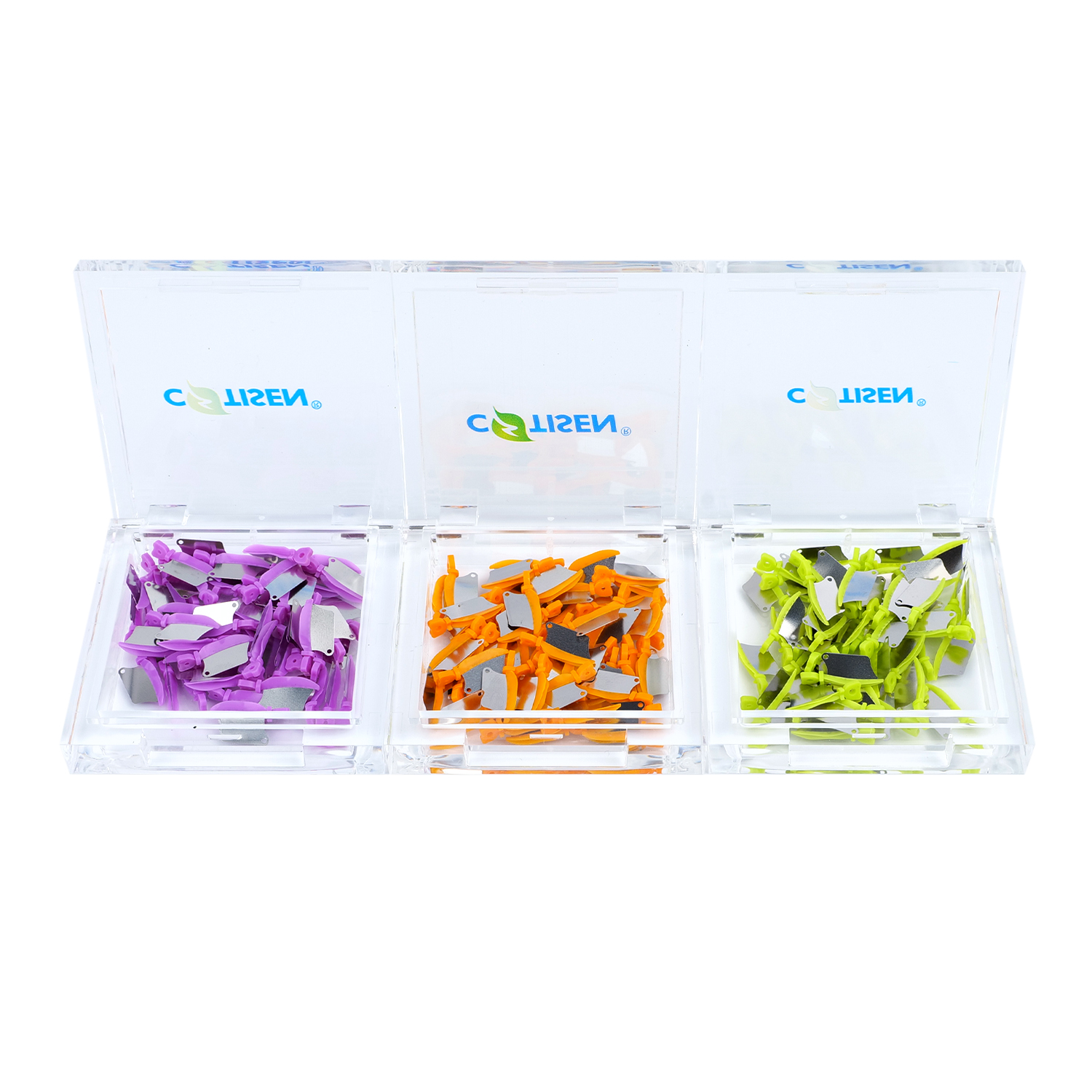 Product Overview: Dental Wedge Guards by COTISEN are an innovative solution designed to protect adjacent teeth during Class II preparations. The combination of a plastic wedge with a stainless steel metal shield ensures separation while preventing accidental bur damage to the neighboring tooth structure.